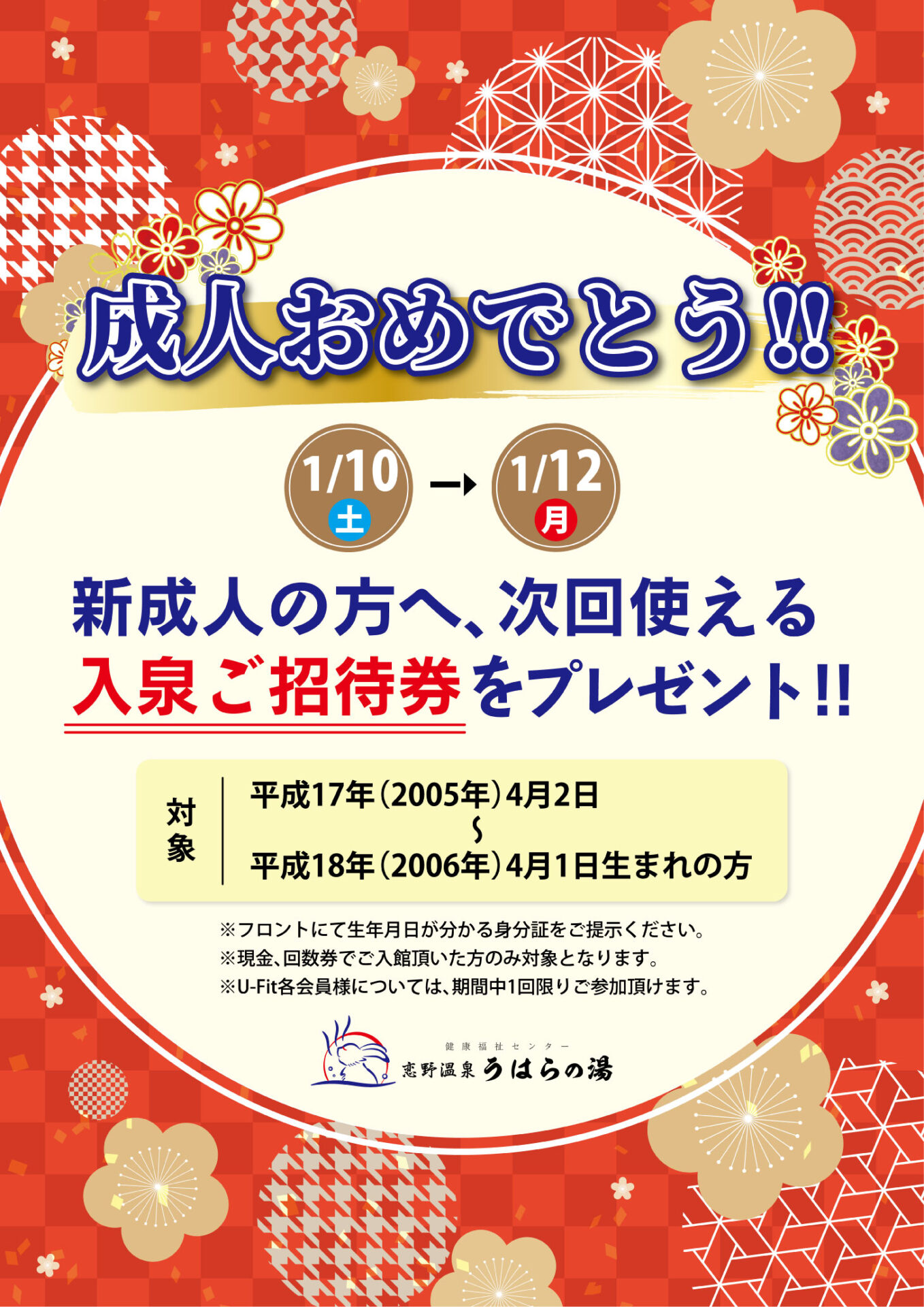 1月10日(土)~1月12日(月)の期間中 ご入館頂いた新成人の方へ