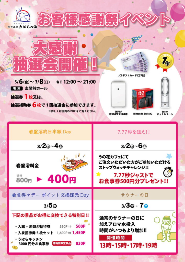 いつも恋野温泉うはらの湯をご愛顧頂きまして誠に有難うございます。